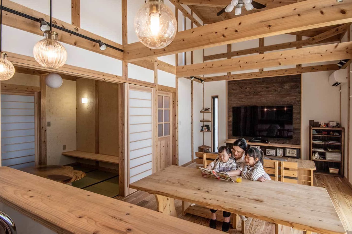 「実を言うと、以前は木の家に興味がなかったんです。湿気やにおいは家電やスプレーで解決すればいいと思うようなタイプでした」とご主人。ところが、ハート工夢店との出会いをきっかけに、少しずつ木の世界に魅了されるようになったといいます。「他にも木を使った家は多いけれど、ここはすべてが本物。何より社長の熱意に感銘を受けました」。